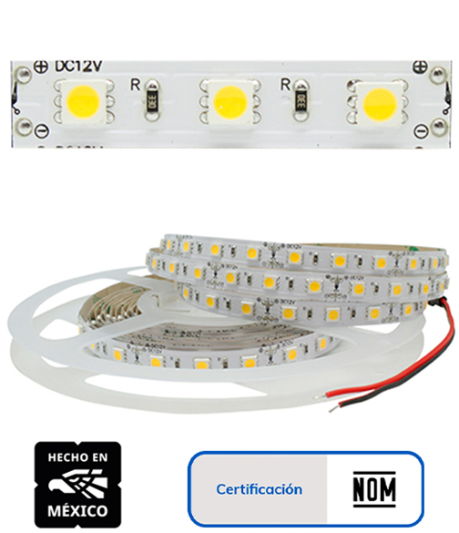 TIRA FLEXIBLE 360 LEDS 5050 BLANCO PURO/CAL Y ROJO CERT. NOM