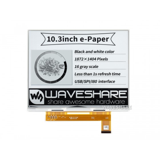 DISPLAY DE TINTA ELECTRONICA 10.3 PULGADAS BLANCO/NEGRO (SIN PCB) PARA RASPBERRY PI