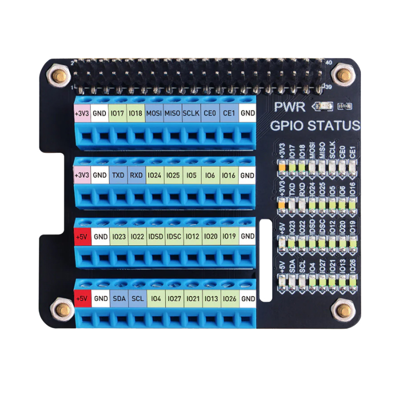 HAT GPIO DE EXPANSION CON BORNERAS Y LEDS - COMPATIBLE CON RASPBERRY PI 5, 4, 3 Y ZERO W