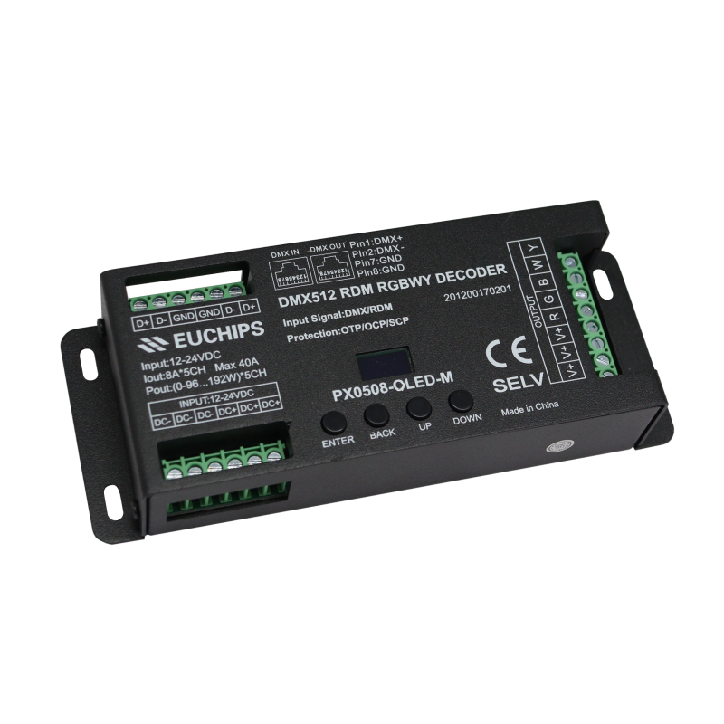 DECODIFICADOR/MAESTRO SENAL DMX A RGBWY 5 CANALES 12-24V/8A CANAL